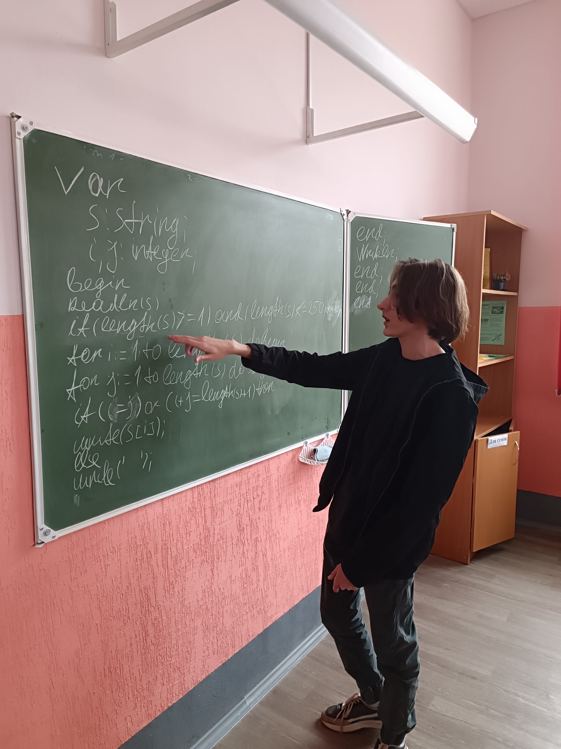 Юным программистам за определенный период времени следовало найти и представить решение поставленной задачи по предмету “Основы алгоритмизации и программирования” самым эффективным способом. В ходе обсуждения в течение отведенного времени ребятами было найдено несколько вариантов решения, которые они представили на обсуждение. За ходом выполнения задачи следили не только преподаватели, но и учащиеся-призеры республиканской олимпиады по специальности “Программное обеспечение информационных технологий”. Они поделились с участниками хакатона своими опытом участия в различных мероприятиях и показали свое решение поставленной задачи. Хочется отметить что важным преимуществом таких состязаний является то, что в результате нельзя сделать вывод, насколько вы успешны или наоборот. Даже если команда займет последнее место, это говорит лишь о том, что в знаниях есть некоторые пробелы, а полученный опыт следует использовать для дальнейшего развития.