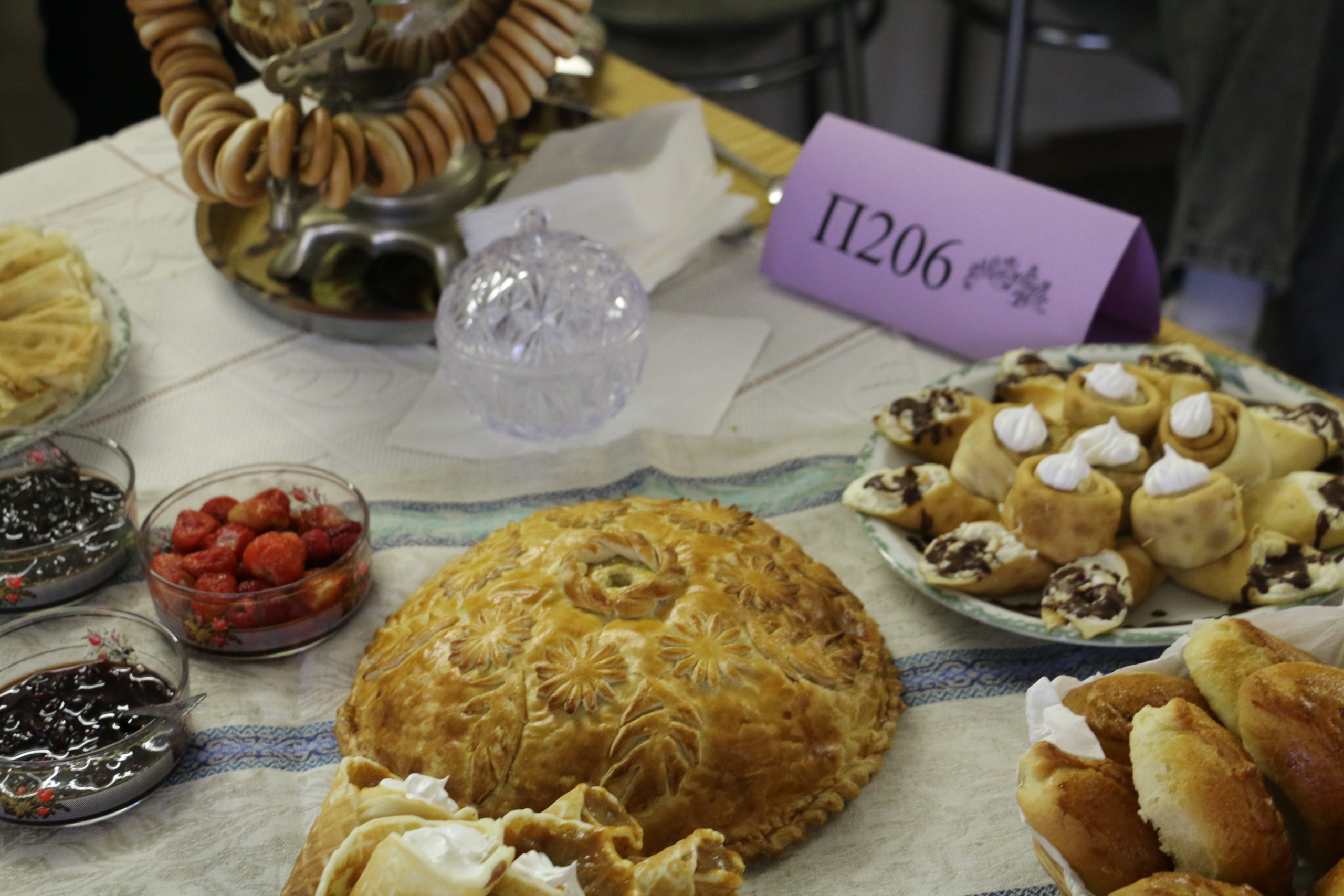 Блинный движ «Масленица 2024» организован в столовой колледжа. Все ребята активно готовились и каждый стол был красиво оформлен. Масленица, широкая и хлебосольная, угощала на все лады: блины с вареньем, с лососем, икрой, грибами, мясом, курицей; торты из блинов с медом, шоколадом, сметанно-творожной начинкой, сгущенкой. Горячие, с пылу-жару!