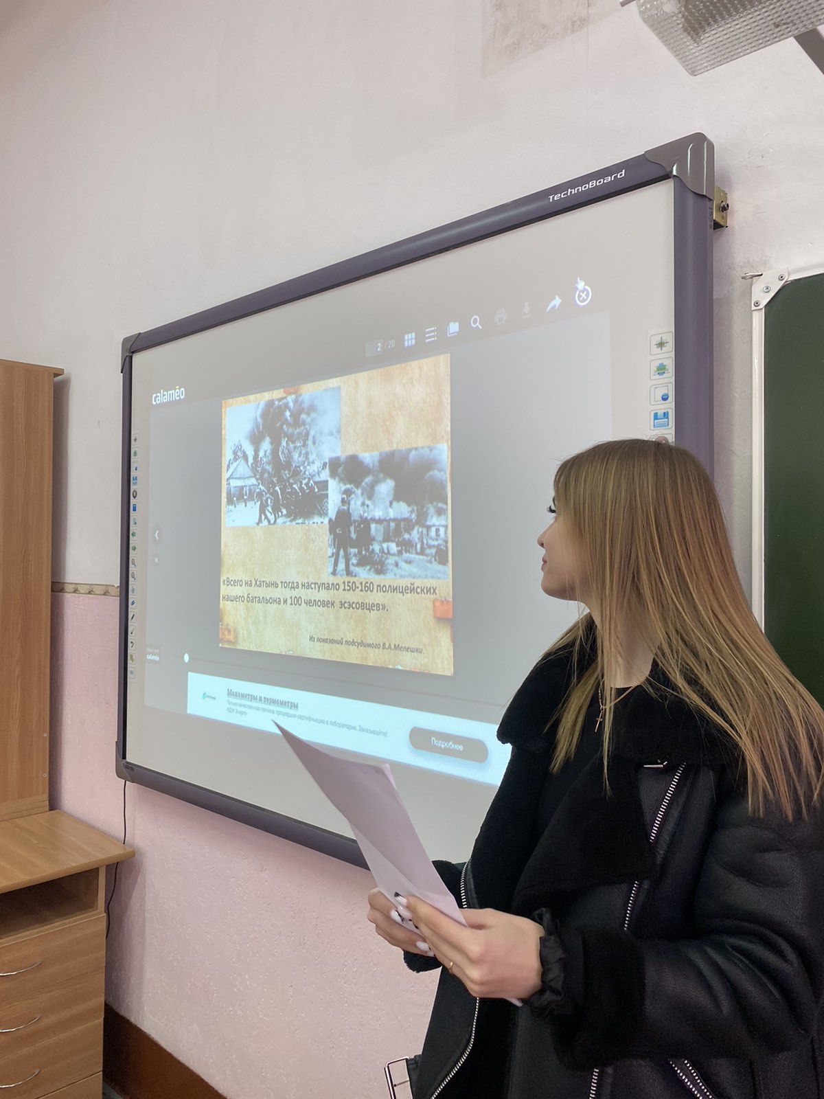 Ребята ознакомились с информацией о дополнении «Хатынского списка» и нашли в нем названия деревень, находившихся в нашем регионе. Обсудили, для чего необходимо знать и хранить историческую правду о преступлениях нацистов в отношении мирного населения в годы Великой Отечественной войны, рассказали о фактах геноцида, о которых слышали от своих родственников.