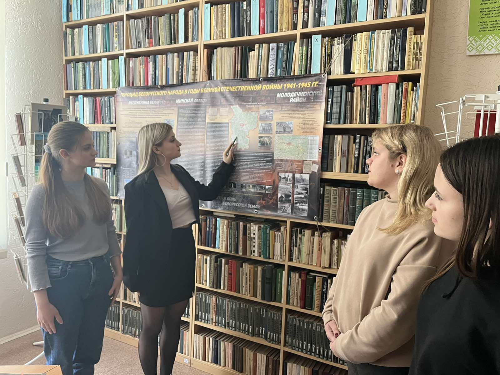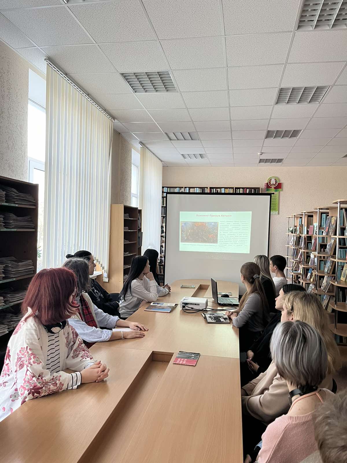 В библиотеке колледжа прошел час памяти «Хатынь:символ великой трагедии»,посвященный 81-й годовщине трагедии Хатыни.Сотрудники библиотеки донесли до каждого учащегося , в какой жестокой и страшной войне одержал победу наш народ,а мультимедийная презентация позволила учащимся совершить виртуальную экскурсию в мемориальный комплекс “Хатынь”.