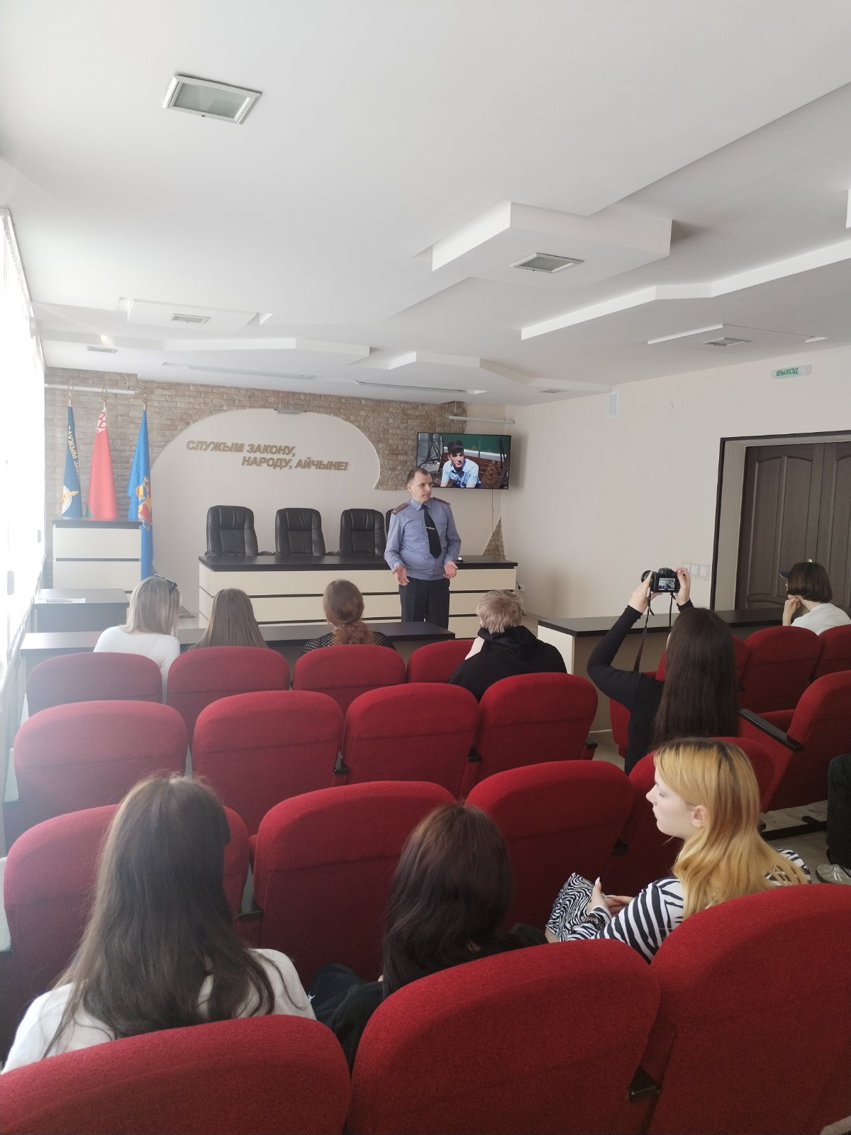10.04.2024 в рамках месячника “Мы выбираем здоровье!” с целью профилактики правонарушений и преступлений среди несовершеннолетних учащиеся колледжа посетили Молодечненский РОВД. Начальник ИДН Посох А. И. ознакомил учащихся с порядком прохождения службы в ОВД, организовал посещение изолятора временного содержания задержанных лиц и находящихся под стражей, разъяснил основания привлечения и ответственность за деяния, связанные с незаконным оборотом наркотиков, распространением порнографических фото и видеоматериалов по средствам глобальной сети интернет, киберпреступления.