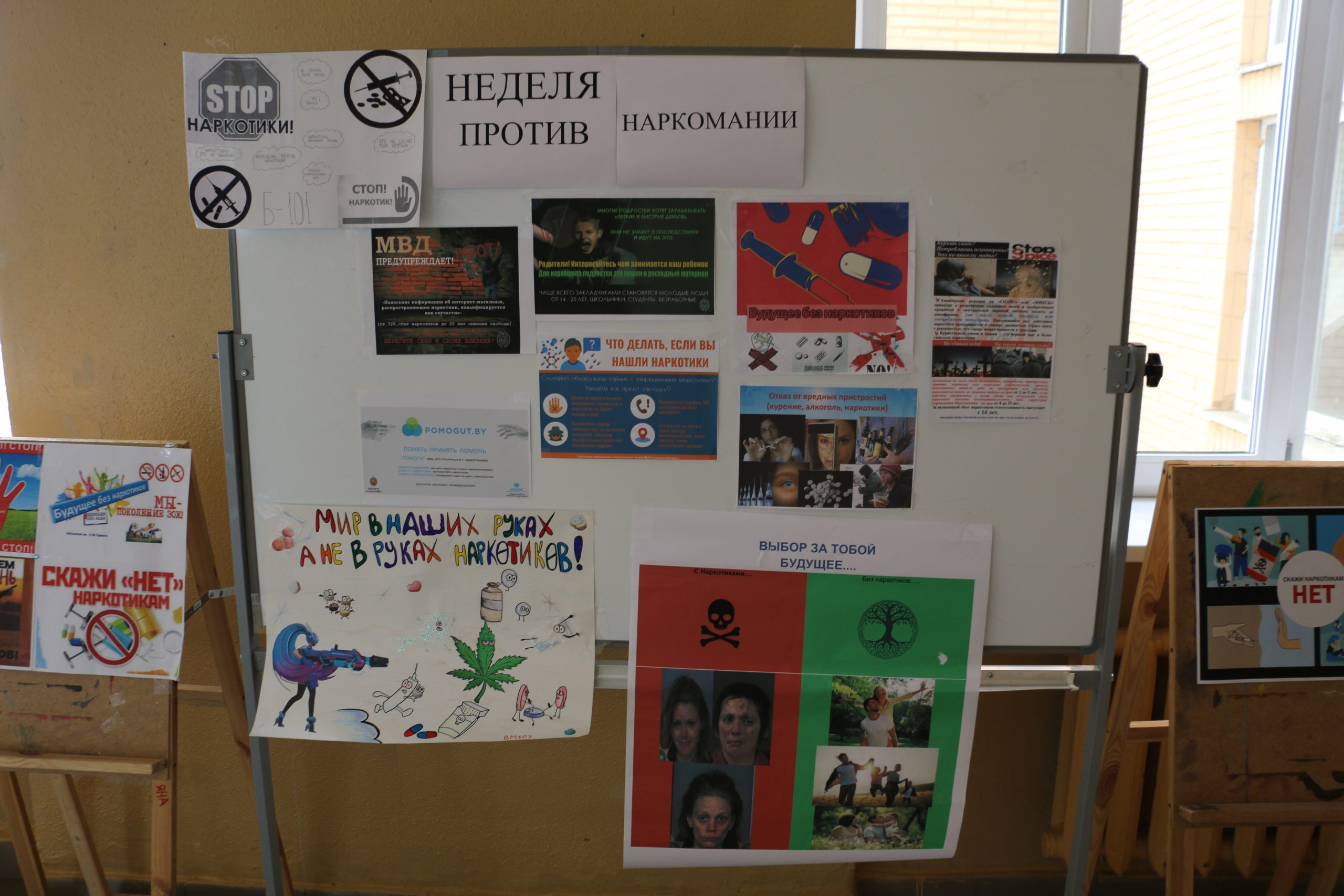 В рамках месячника “Мы выбираем здоровье!” с 15 апреля по 19 апреля проходит Неделя против наркомании. С целью формирования здоровьесберегающего поведения молодежи, профилактики употребления психоактивных веществ на протяжении недели были организованы во всех группах профилактические беседы, игра “Наркотики-Закон-Ответственность”. Оформлен информационный стенд с наглядной информацией по профилактике наркомании, организован конкурс фотоколлажей и плакатов “Будущее без наркотиков!”