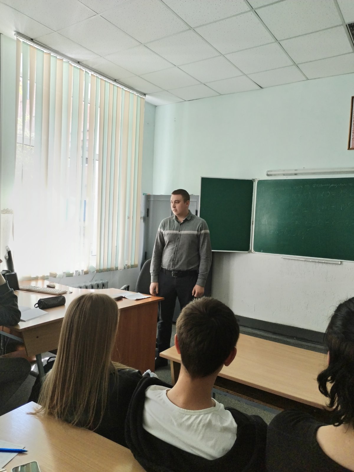 18.05.2024 в колледже состоялась встреча с начальником отделения по киберпреступности Молодечненского РОВД с учащимися специальностей “Программное обеспечение информационных технологий” и “Правоведение” и сотрудниками колледжа. Выступающий рассказал о мерах безопасности на железной дороге, разъяснил основные правила поведения в цифровом пространстве и глобальной сети интернет. В завершении встречи предупредил о недопущение совершения противоправных деяний, а учащиеся поблагодарили сотрудника РОВД за содержательную беседу, а также возможность получить исчерпывающие ответы на интересующие вопросы.
