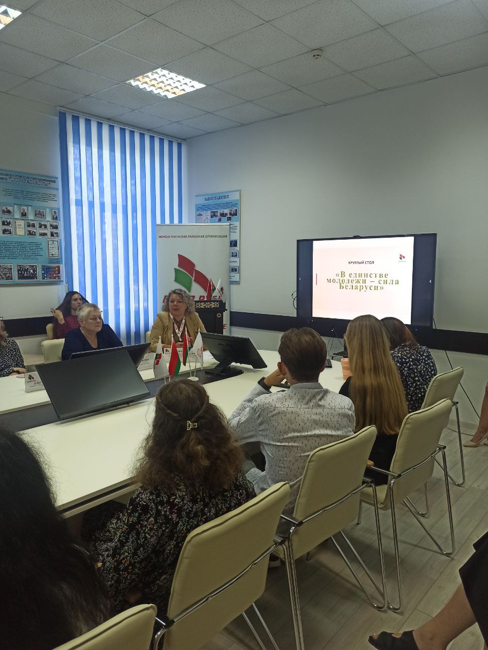 Эстафету приняла первичная организация колледжа ОО «Белая Русь», организовав диалоговую площадку “В единстве молодежи – сила Беларуси”, во время которой учащаяся молодежь, активисты общественного объединения «Белая Русь» больше узнали об истории и значимости государственного праздника и консолидирующей роли в истории государства и современной жизни белорусского общества. Модератором встречи была Председатель Молодечненской районной организации РООО «Белая Русь» Марина Щигло.