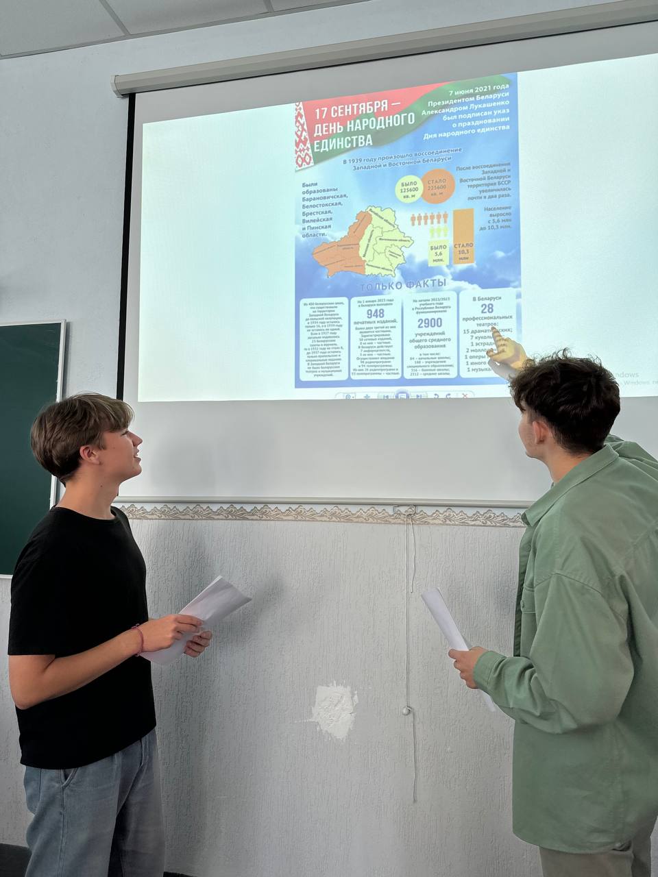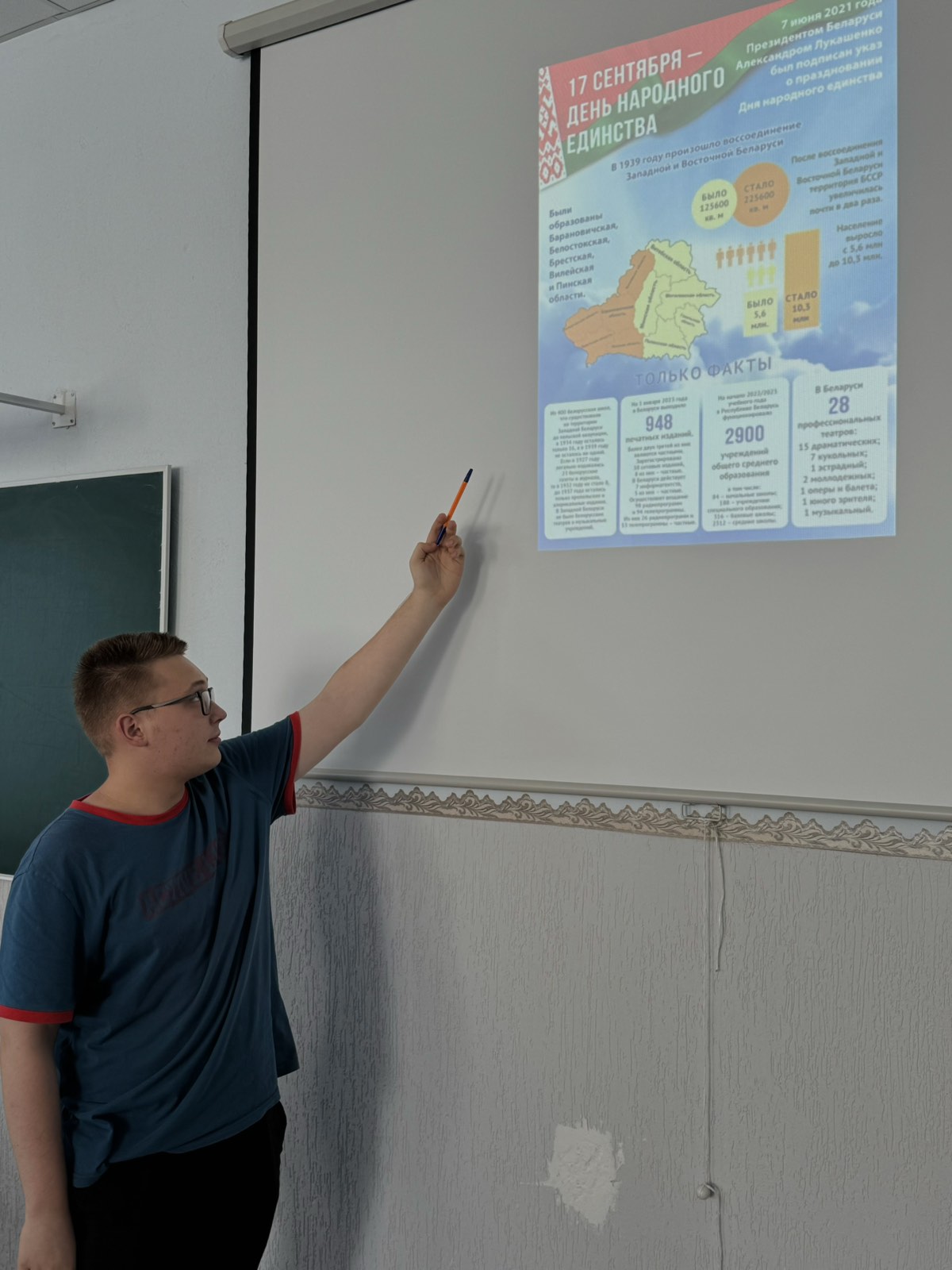 17 сентября в колледже состоялся Единый урок, посвященный 85-летию воссоединения Западной Беларуси и БССР, который направлен на осознание учащимися смысла и значения государственного праздника – Дня народного единства, важности сплоченности белорусского народа для сохранения сильного и независимого государства. При его проведении акцент был сделан на исторических событиях, ставших исторической основой праздника, его значении для современной Беларуси, значимости для сохранения суверенитета Беларуси.