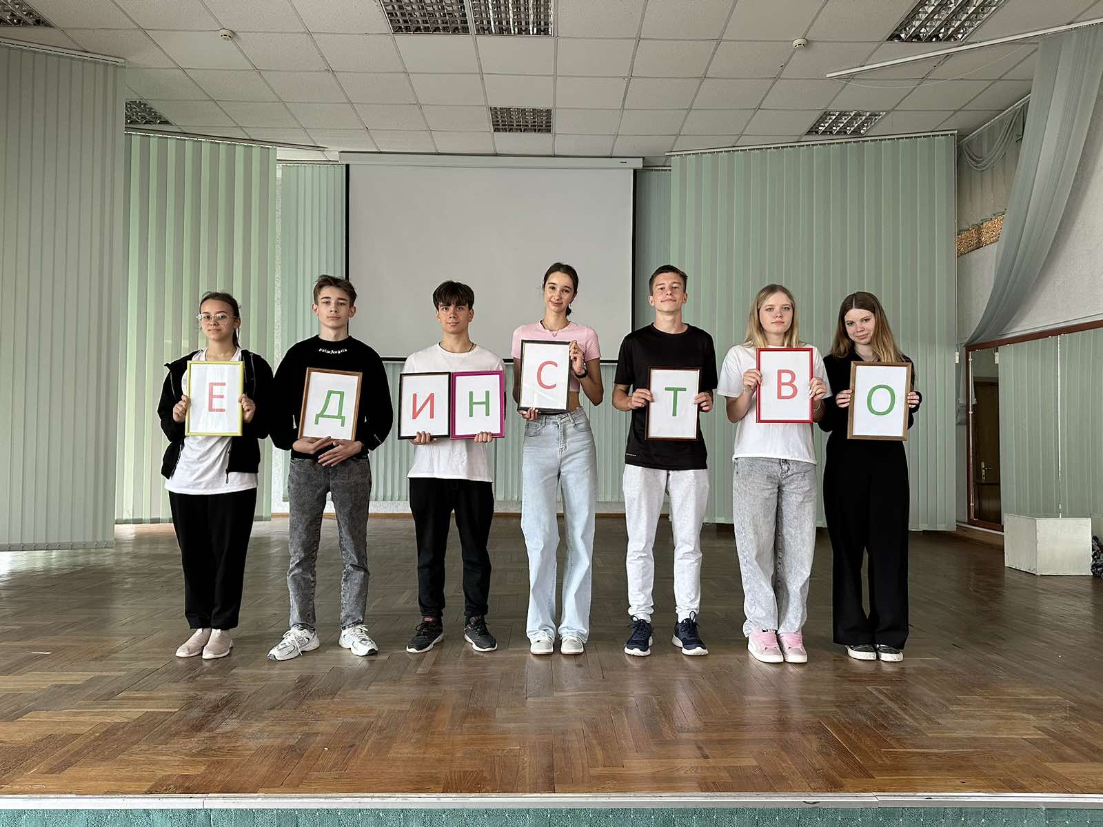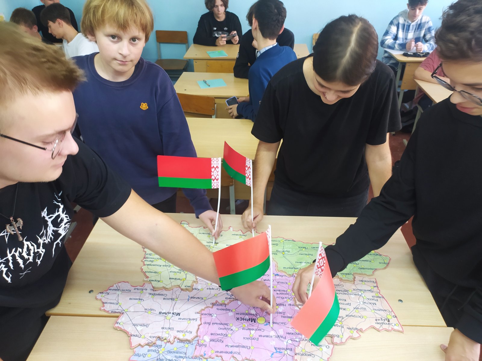 Для учащихся групп нового набора была организована квест-игра «В символах Беларуси наши корни», которая состоит из 7 станций: «Славутыя сыны Беларусi»», «Государственные праздники», «Беларусь культурная», «Беларусь помнит!», «Качества белоруса», «Памятники Беларуси», «Патриотическая». Учащиеся, получив путевые листы, с азартом и интересом выполняли разнообразные задания на каждой станции, расширяя свой кругозор. В заключении игры капитаны команд собрали слово «ЕДИНСТВО».