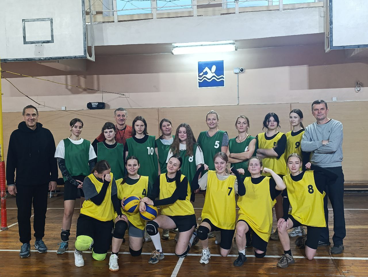 В рамках празднования 65-летия колледжа в спортивном зале прошла матчевая встреча по волейболу между учащимися и выпускниками колледжа. Сборную команду учащихся представили лучшие волейболистки колледжа (капитан команды Лепчинская Татьяна группа СП405).