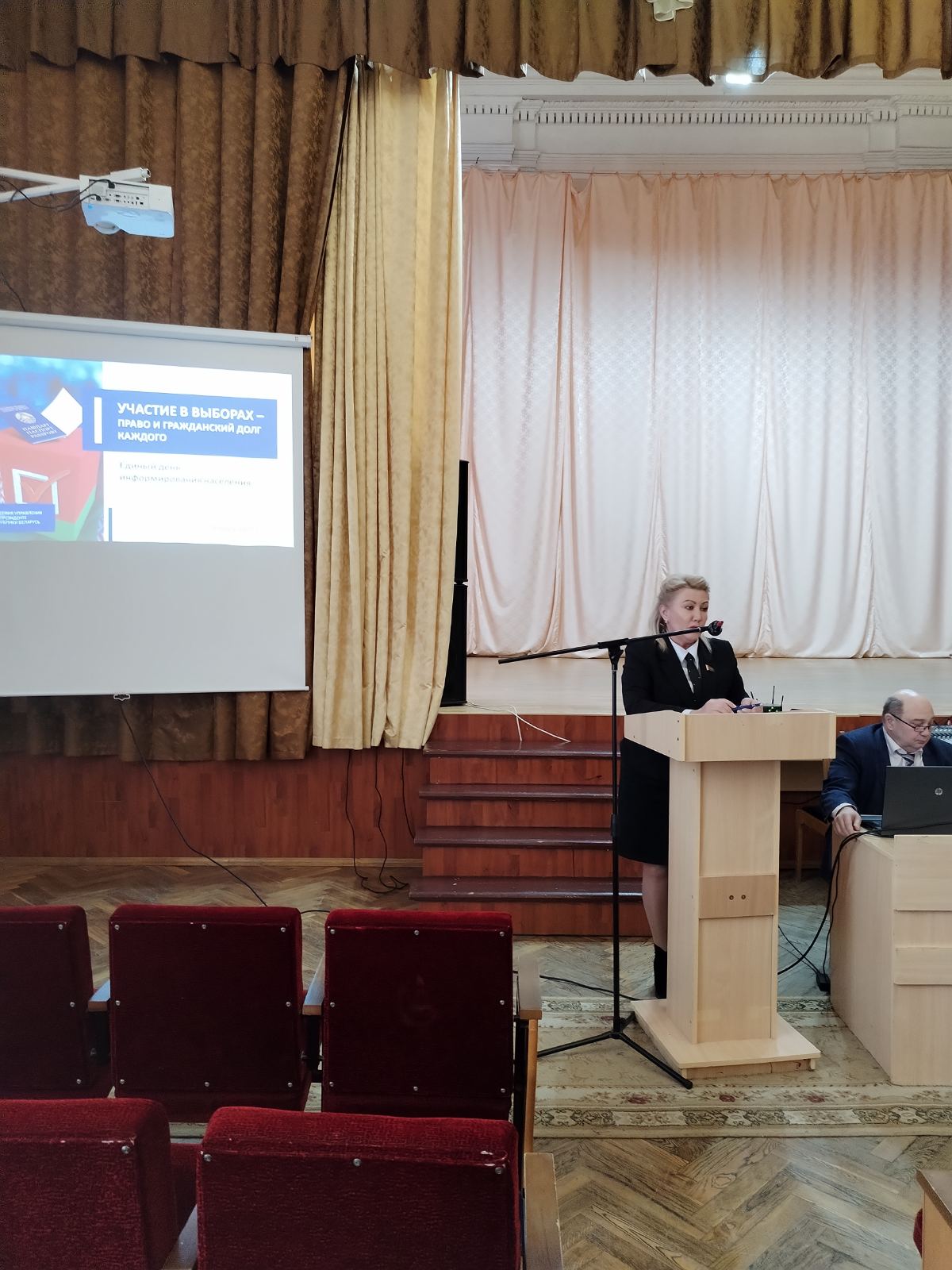 Выступающая разъяснила порядок и условия проведения выборов Президента Республики Беларусь, законодательные аспекты, закрепленные в Конституции и избирательном кодексе, обратила внимание на важность участия в голосовании, ответственном и серьезном отношении, призвала молодых избирателей принять участие и сделать свой выбор.