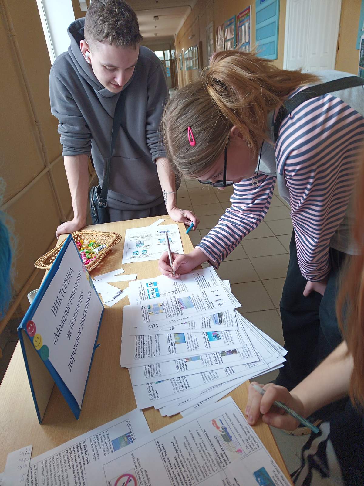 В рамках профилактической акции «Засветись!» в УО «Молодечненский торгово-экономический колледж» проведена викторина «Молодое поколение – за безопасное дорожное движение!». Викторина направлена на углубление знаний учащихся о правилах дорожного движения, основных правил поведения на улице, дороге с целью предупреждения дорожно-транспортного травматизма. В ходе викторины были рассмотрены вопросы организации дорожного движения, причины и последствия дорожно-транспортных происшествий, безопасное поведение пешеходов и пассажиров, безопасное поведение на дорогах велосипедистов и водителей мопедов, безопасное поведение в общественном транспорте и автомобиле, правила поведения на железнодорожном транспорте.