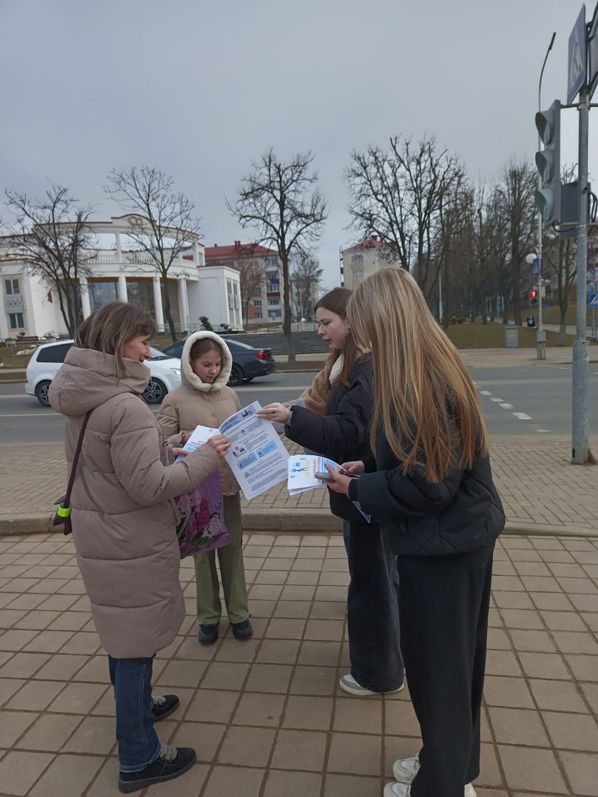 С целью предупреждения дорожно-транспортных происшествий с участием пешеходов и привлечения общественного внимания к проблемам дорожной безопасности учащиеся колледжа провели разъяснительную работу со взрослыми и детьми на пешеходном переходе с вручением памяток «Переходи дорогу правильно: советы пешеходу» и «При переходе дороги посмотри по сторонам».