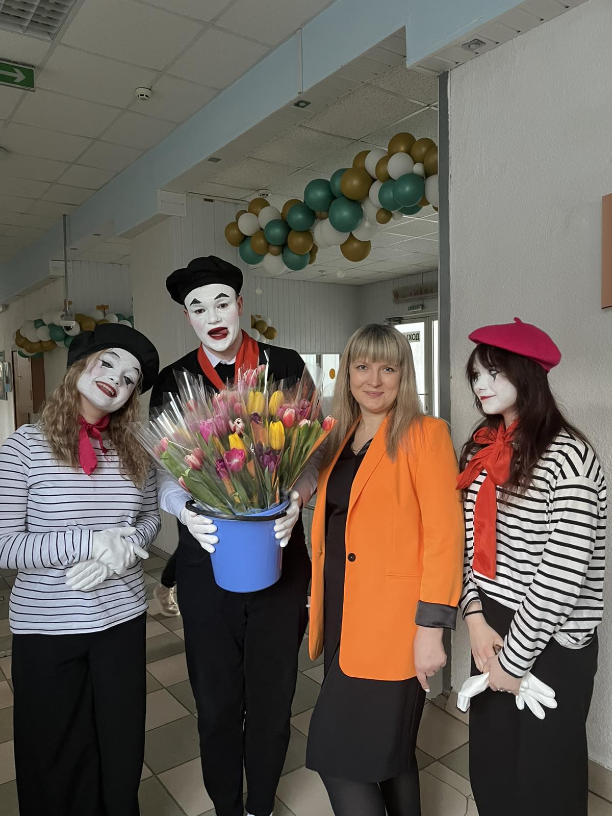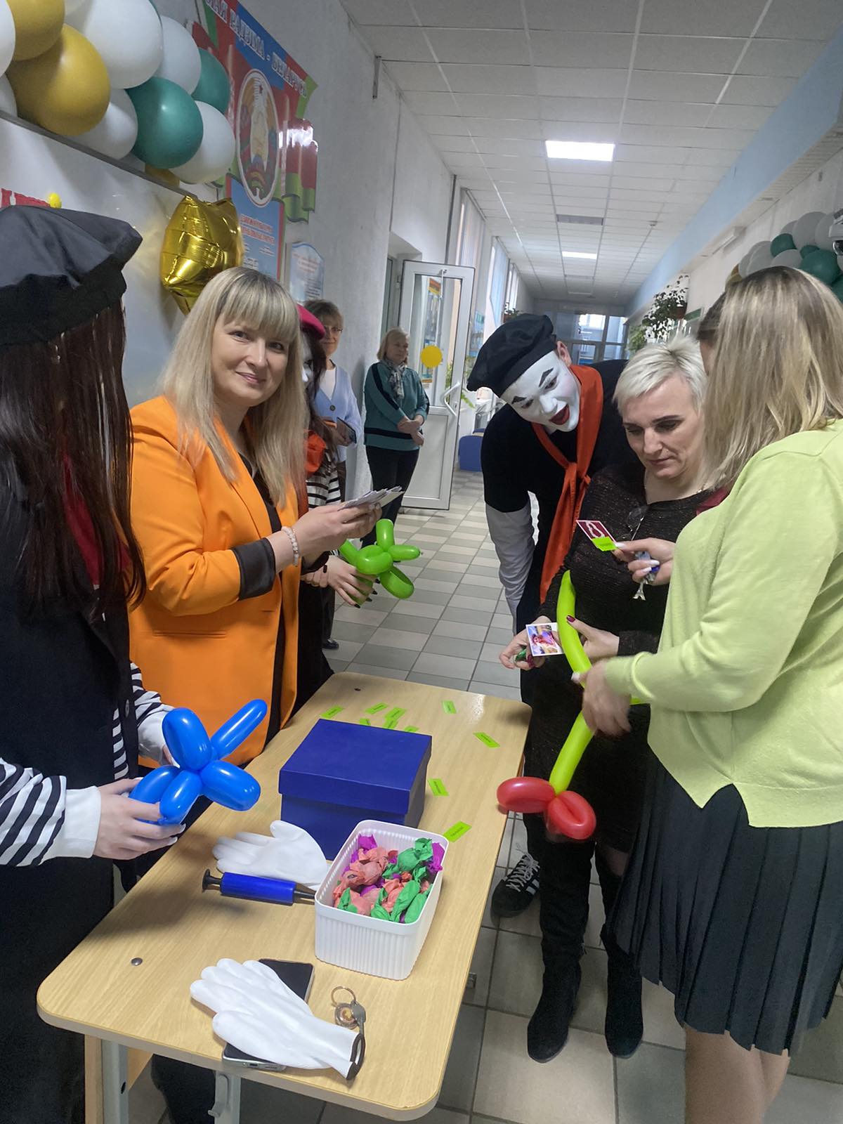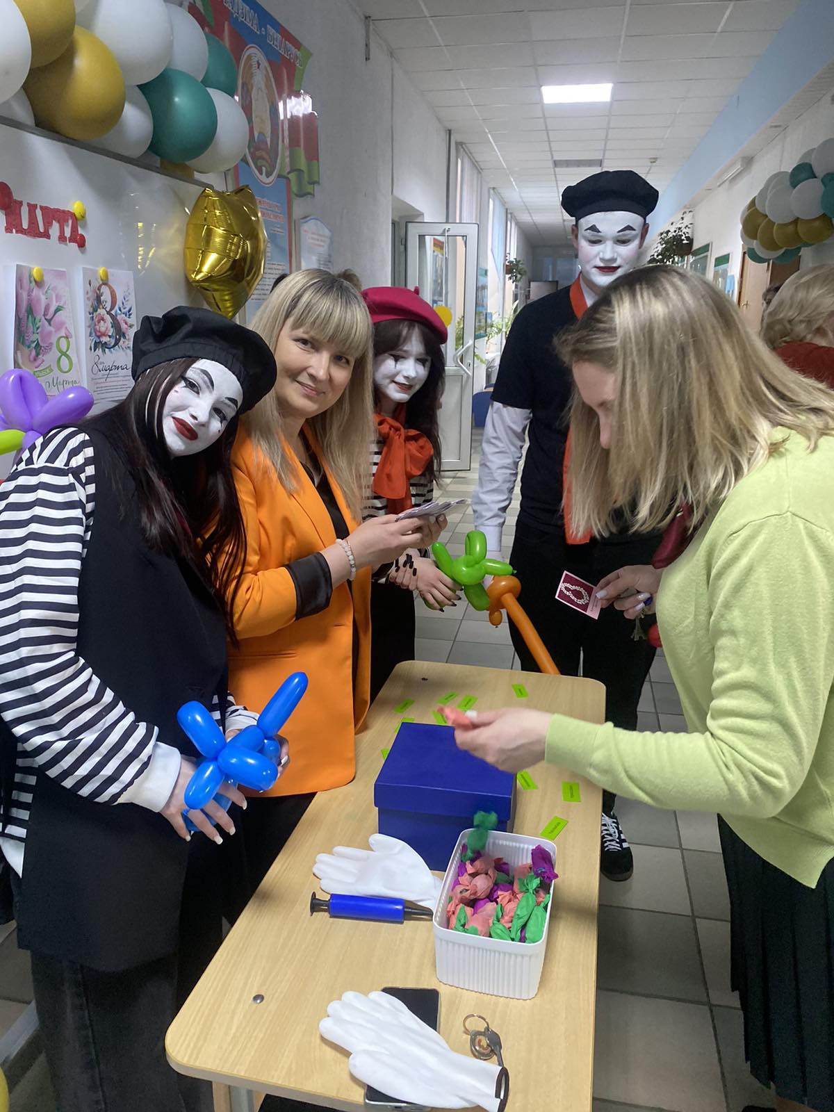 С утра в фойе колледжа были организованы конкурсы, выступление мимов для сотрудников колледжа.