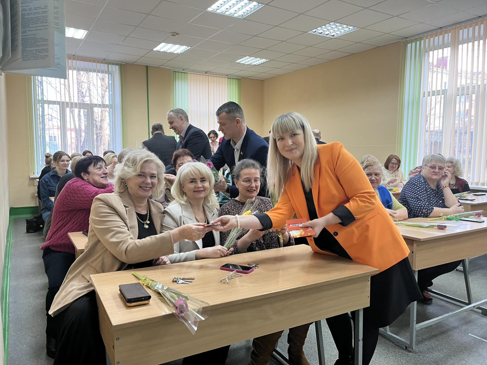 Далее по программе женщин ожидало поздравление от председателя профсоюзной организации Фалькович Ольги Тадеушевны, а также слова благодарности за труд всем женщинам и теплые слова от директора Череповича Олега Антоновича.