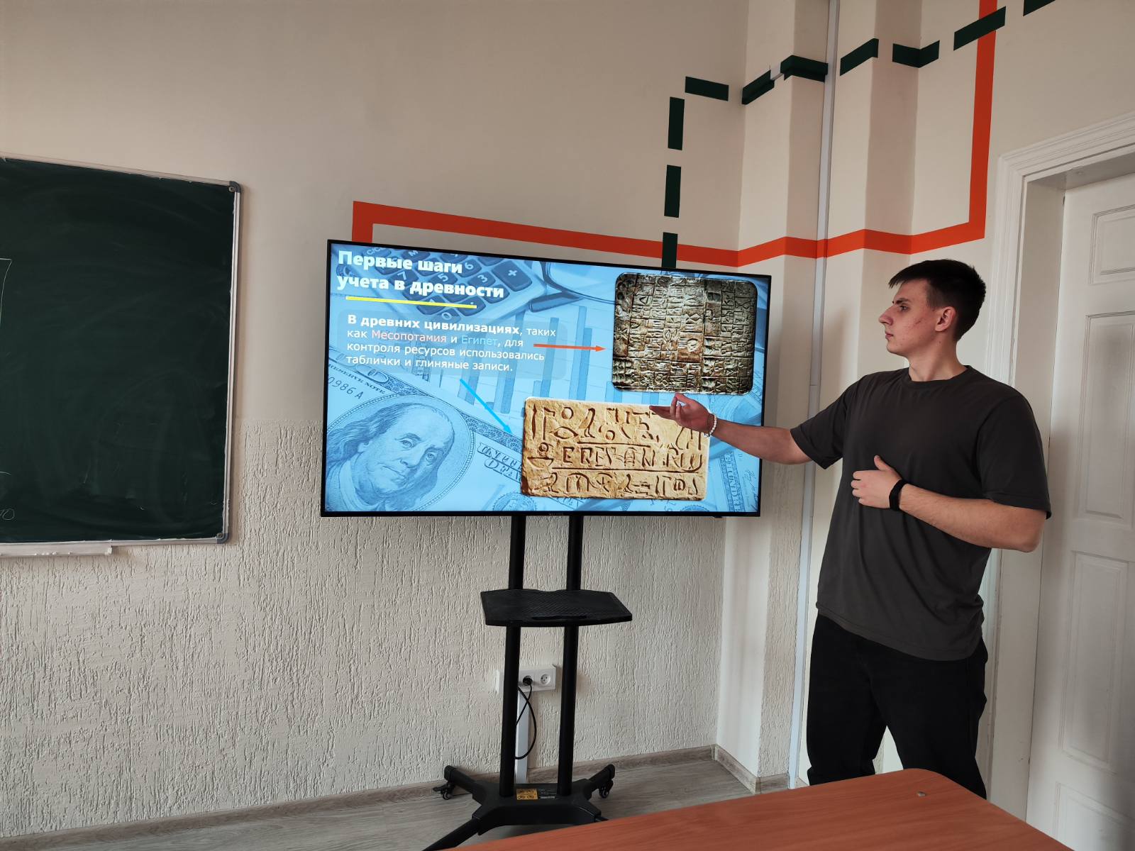 Четвертый день отличился активным участием будущих программистов, представивших свои презентации на конкурс «Бухгалтерский учёт: от истоков до наших дней!», где можно было увидеть исторические факты, этапы развития науки, принципы ведения бухучёта и т.д. (преподаватель Делендик О.В.)