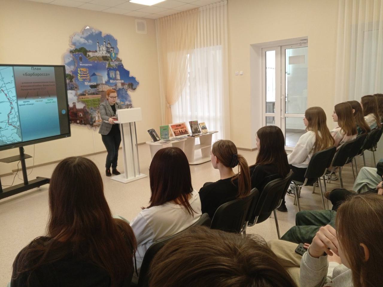 Сотрудник библиотеки подробно рассказала о преступлениях нацистов и их пособников против мирного населения деревни Хатынь и других деревень Беларуси.