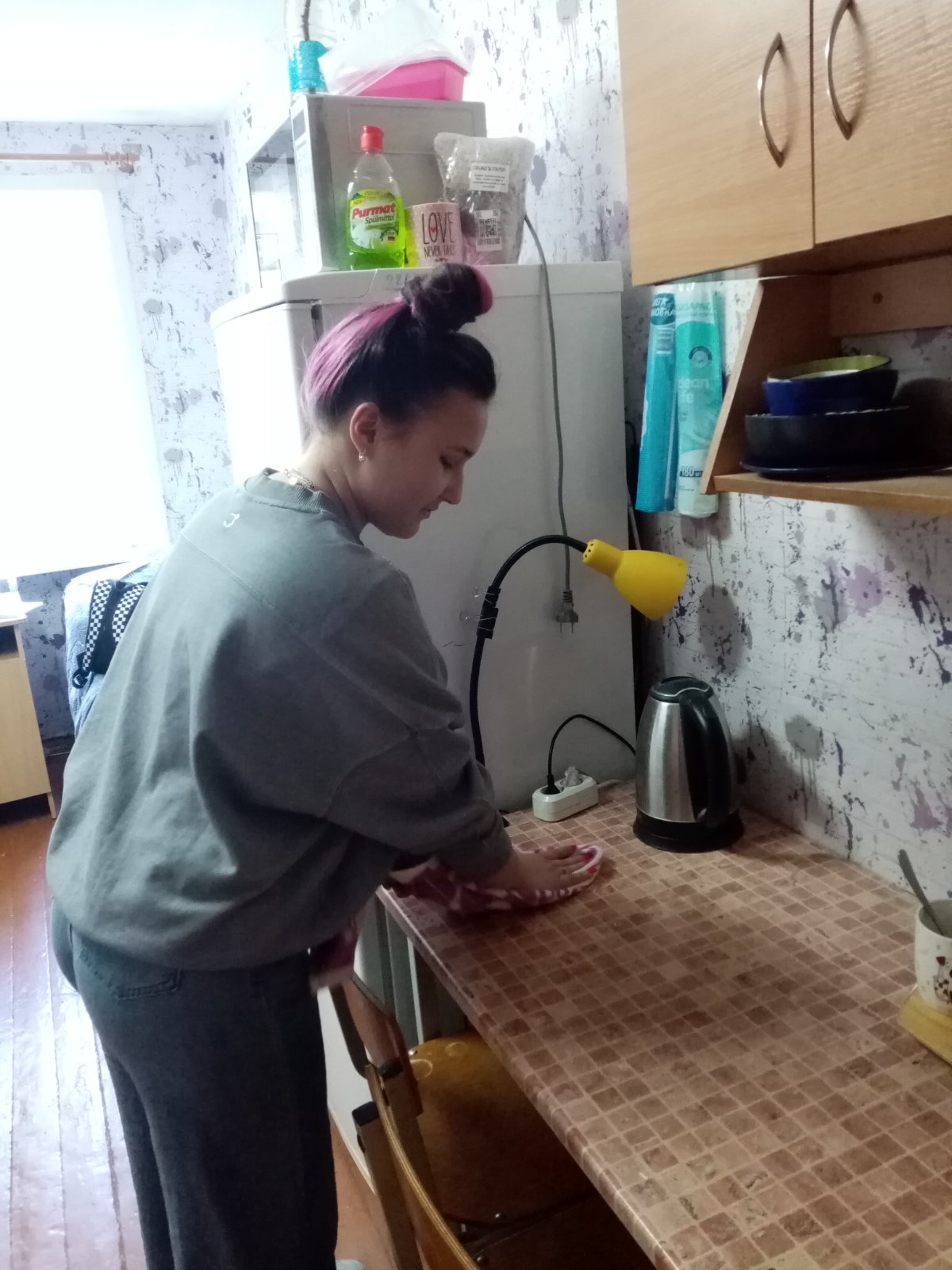 Участники акции делали уборку в комнатах, коридорах, на кухнях, территории вокруг общежития, выносили мусор, клеили обои, устанавливали новые элементы декора, проводили озеленение комнат.