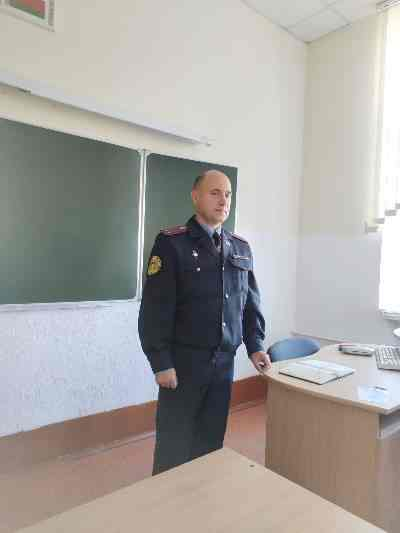 26.09.2025 в колледже состоялась встреча начальника Сморгонского отдела Департамента охраны МВД Республики Беларусь Бышкало Е. В. с учащимися групп П 306 и П 310.