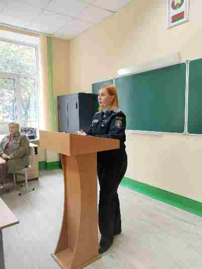 30.09.2025 в колледже состоялась встреча начальника отдела тылового обеспечения Советского РУВД г. Минска Муляревич А. А. с учащимися групп П 306 и П 310.