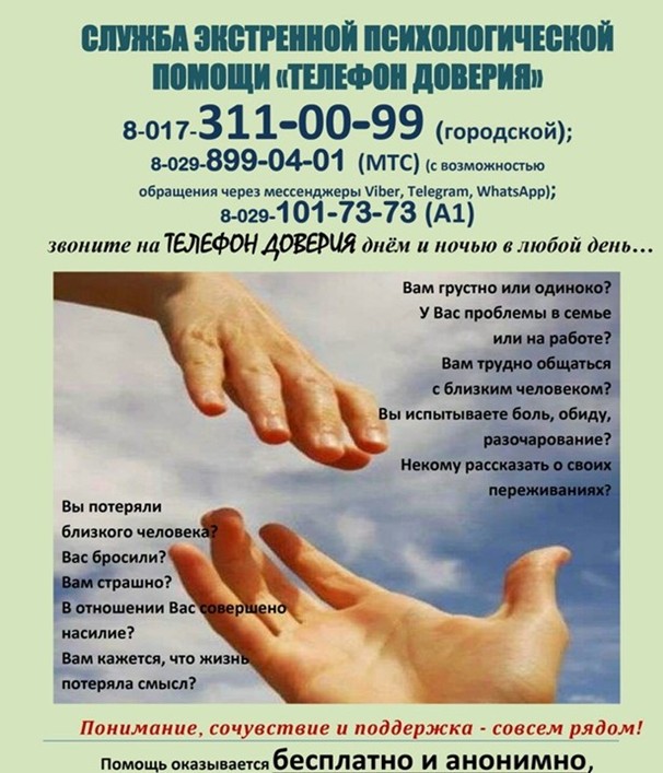 В рамках месячника «Позитив – как стиль жизни» организована диалоговая площадка «Ответственность и последствия» для учащихся группы М102 с врачом-наркологом Чуприк Екатериной Ивановной по профилактике суицидов и суицидального поведения, а также ценностного отношения к жизни, позитивных мыслей в молодёжной среде. В ходе встречи врач привела многочисленные примеры из своей практики о том, как врачи борются за жизнь детей и подростков, спасая их от неминуемой смерти, и призвала учащихся вести здоровый образ жизни. В заключении беседы Екатерина Ивановна напомнила учащимся, что жизнь человеку дается только раз и она должна быть здоровой, интересной и долгой. Напомнила учащимся о круглосуточной психологической помощи и телефонах доверия, о существующем в нашем городе Центре, дружественном подросткам (+375 29 6654868)