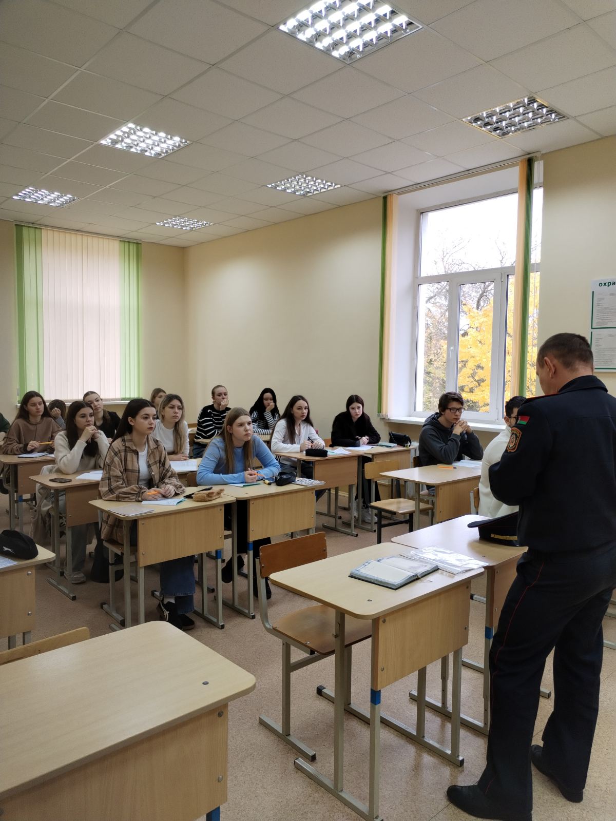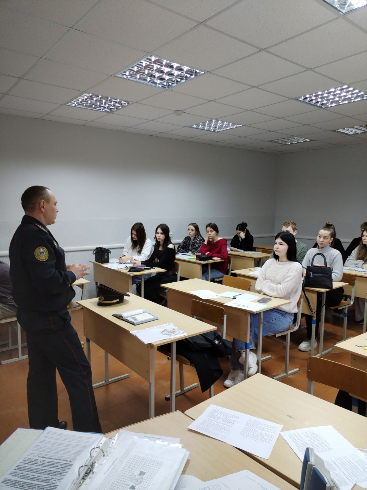 17.10.2025 в колледже состоялась встреча сотрудника отдела Департамента охраны МВД Республики Беларусь Первомайского района г. Минска Чеховского Ю. А. с учащимися групп П 306 и П 310.