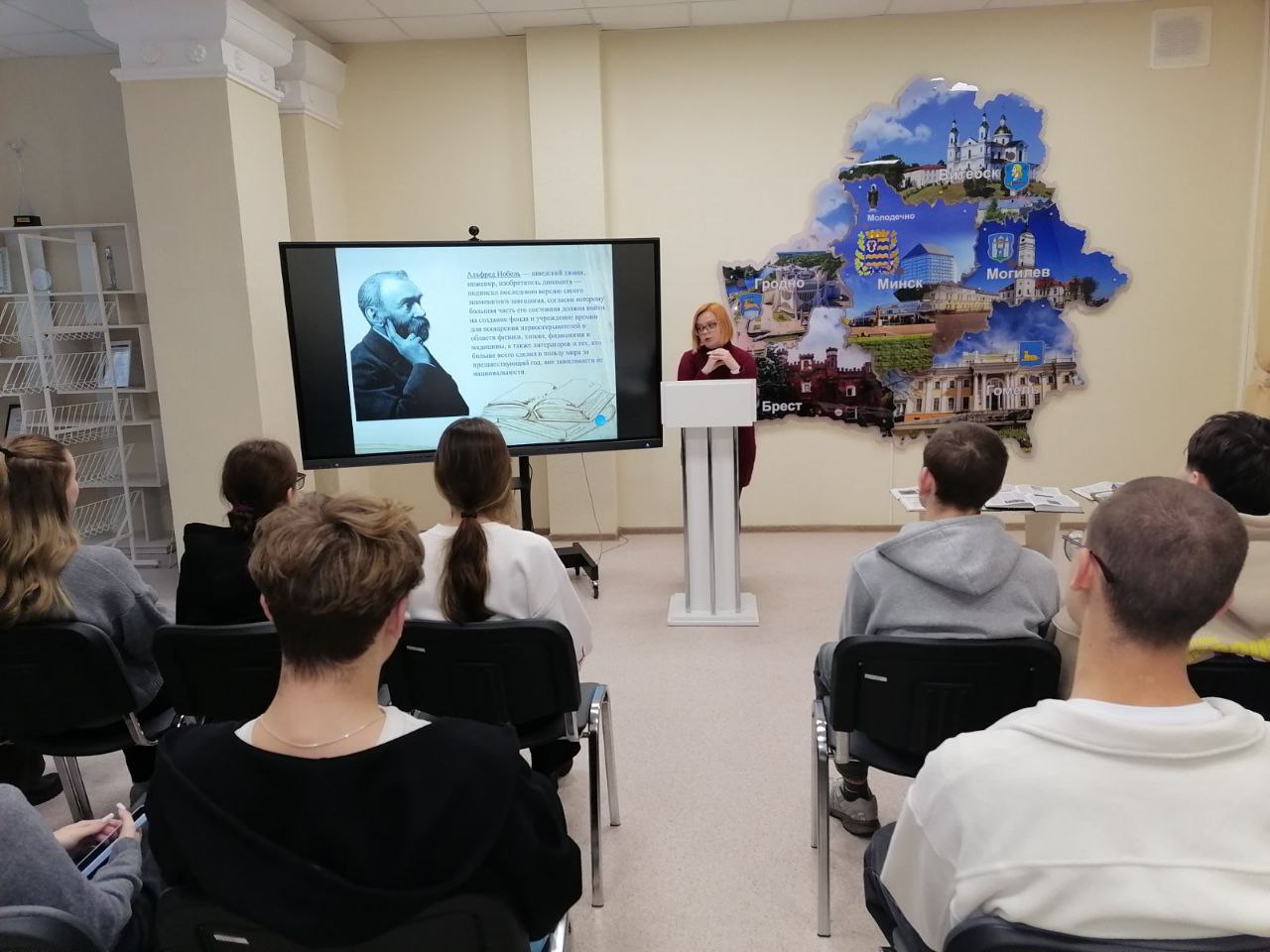 В рамках декады 28.11.2025г. с обучающимися гр. П210 специальности “Правоведение”, преподавателем истории государства и права Дудко Н.М. было организовано мероприятие в центральную районную библиотеку им. М. Богдановича г. Молодечно.