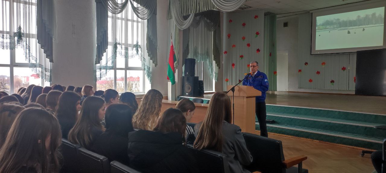 10 декабря 2025 года в рамках Дня безопасности на льду в колледже состоялась встреча учащихся 1 курса с председателем Молодечненской районной организации ОСВОД Петюшиком Анатолием Михайловичем.