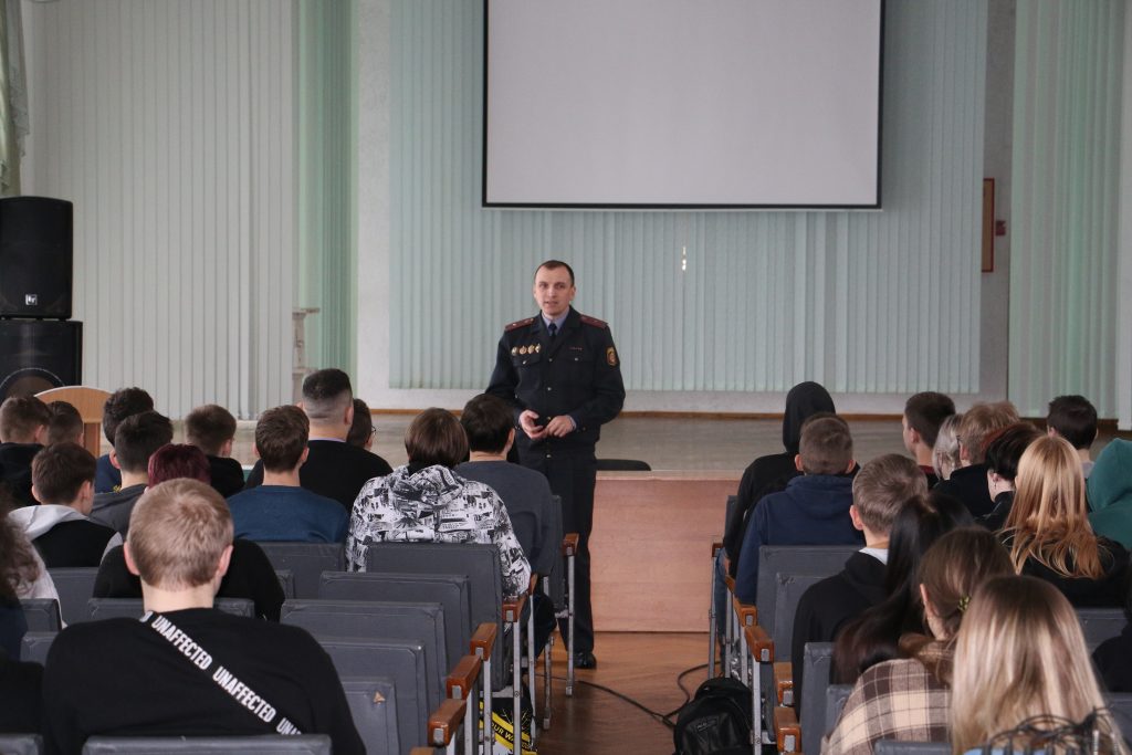 23 января 2023 года в колледже стартовала межведомственная акция «Дружим с законом!». В рамках акции 27.01.2023 состоялась встреча учащихся 1-го курса с начальником инспекции по делам несовершеннолетних Молодечненского РОВД Посохом Алексеем Ивановичем, который проинформировал их о том, что в Беларуси проводится Единый день безопасности дорожного движения под девизом «Вместе – за безопасность на дорогах!», целью которого является пропаганда соблюдения ПДД. Напомнил учащимся об их правах и обязанностях, о правилах безопасного поведения на дороге и в транспорте, ответственности за различные нарушения в сфере дорожной безопасности.