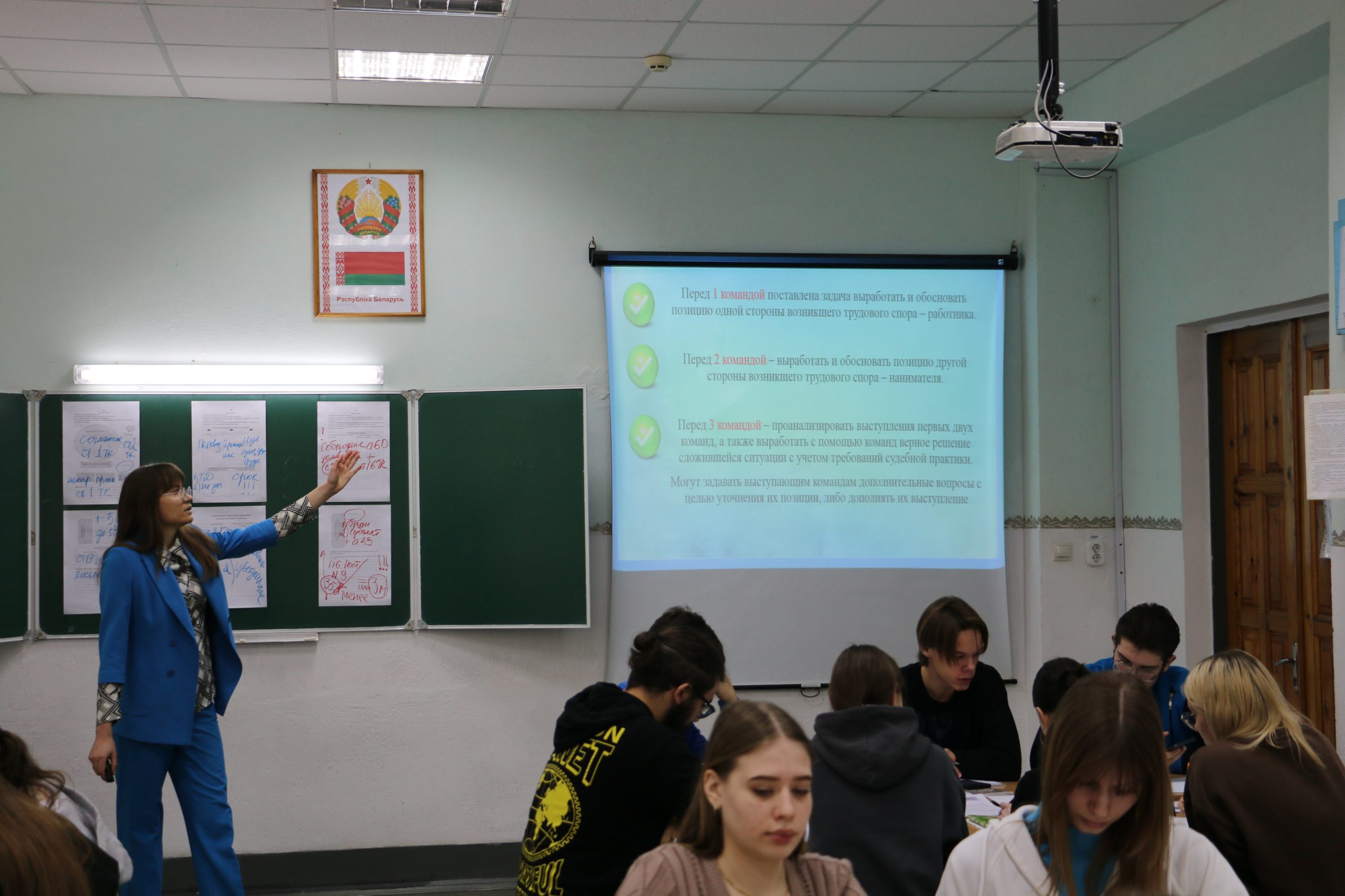 Безусловно, решение ситуационной задачи стало ярким моментом занятия! Участникам групп надо было по заданию выработать и обосновать позицию работника, нанимателя, а также верное решение сложившейся ситуации.