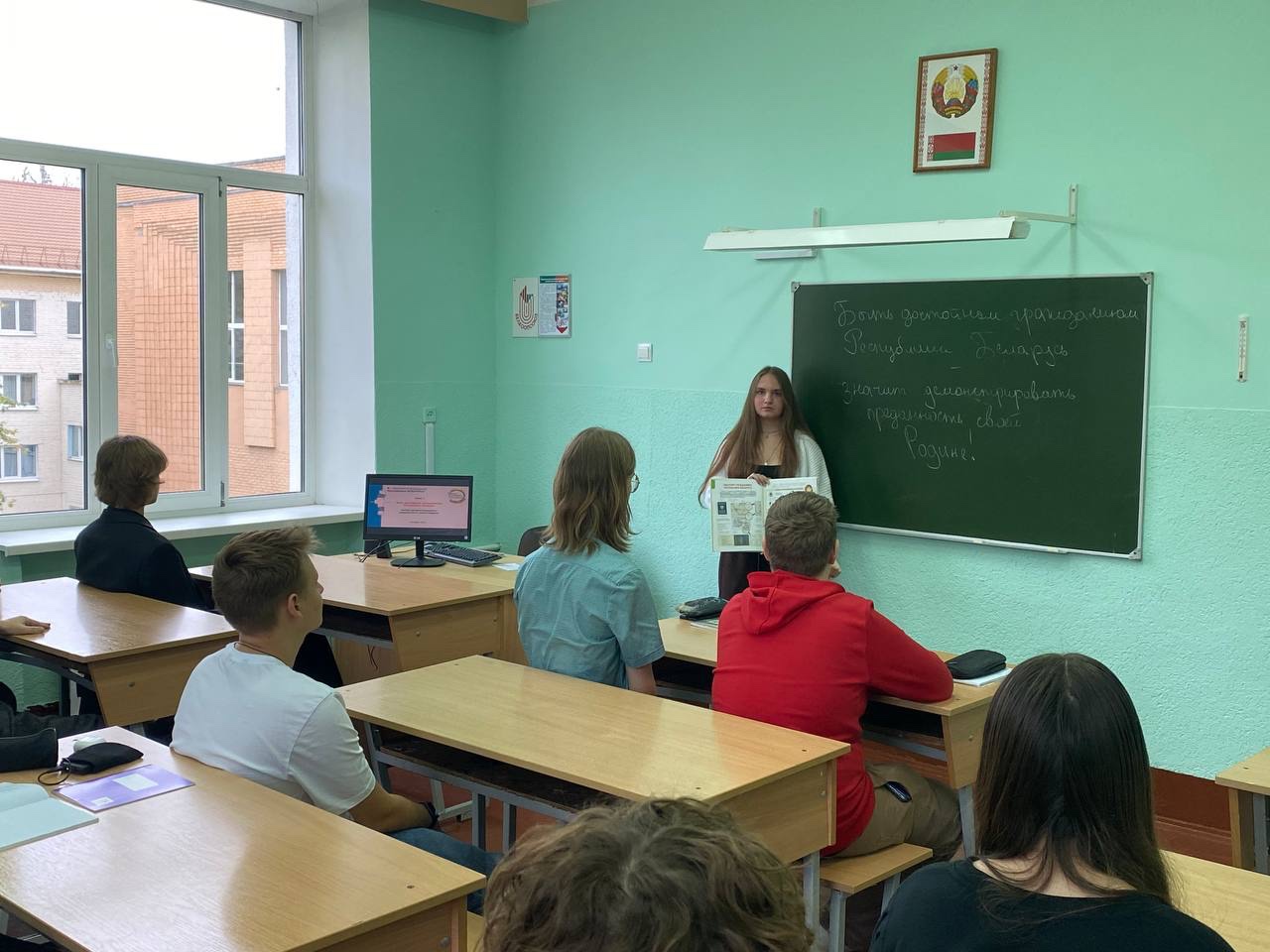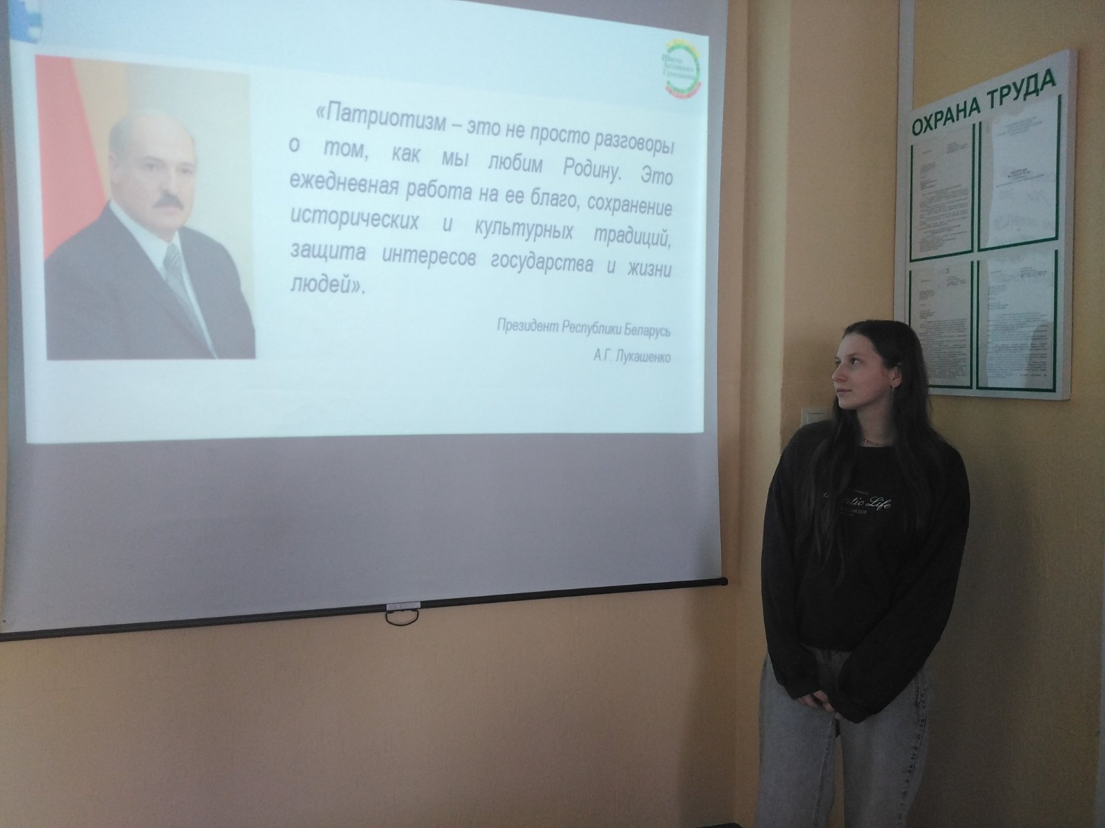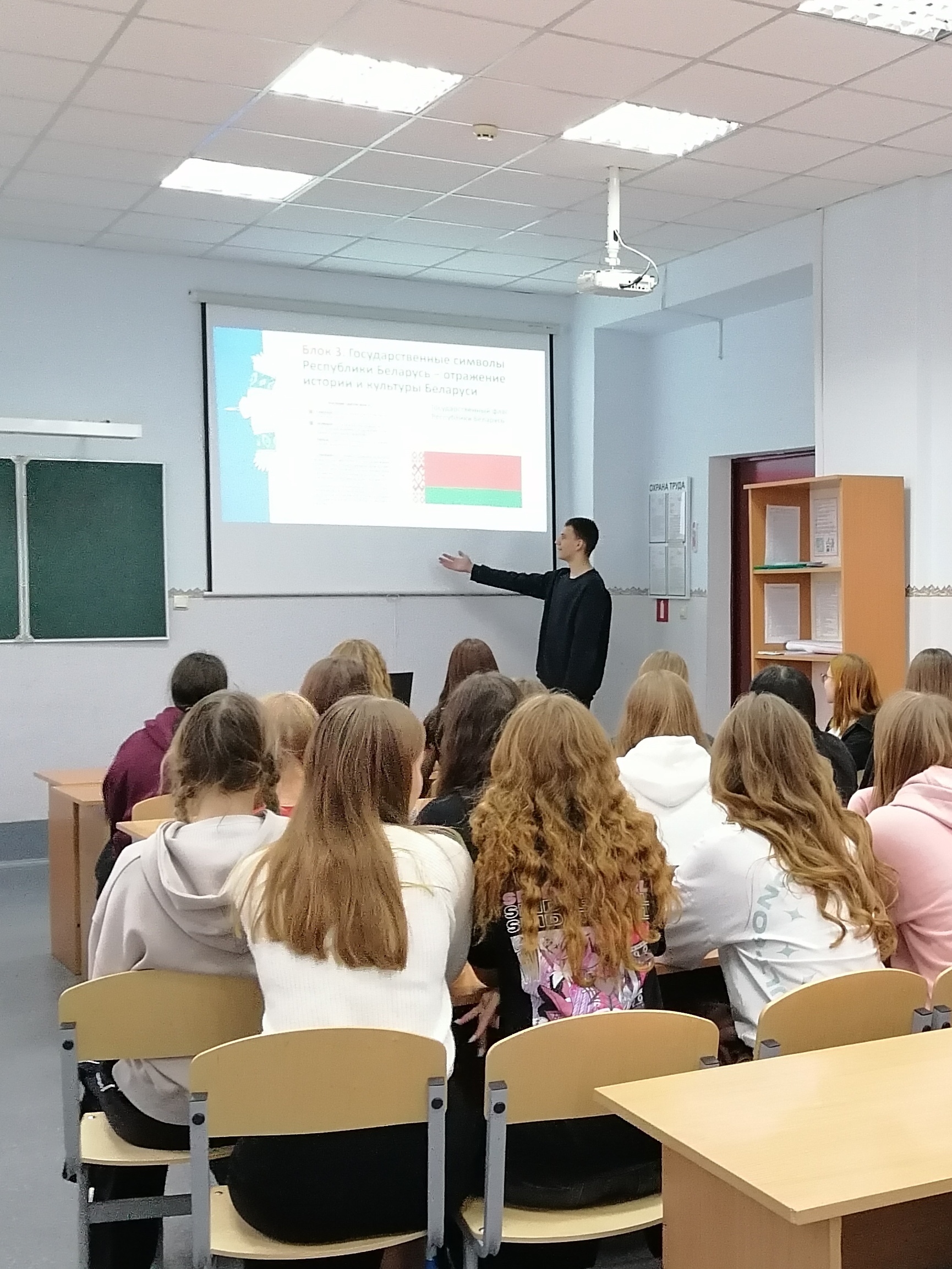 Тема сентябрьского занятия была особенно важной для новоиспеченных студентов: «Быть достойным гражданином Республики Беларусь – значит демонстрировать преданность своей Родине».