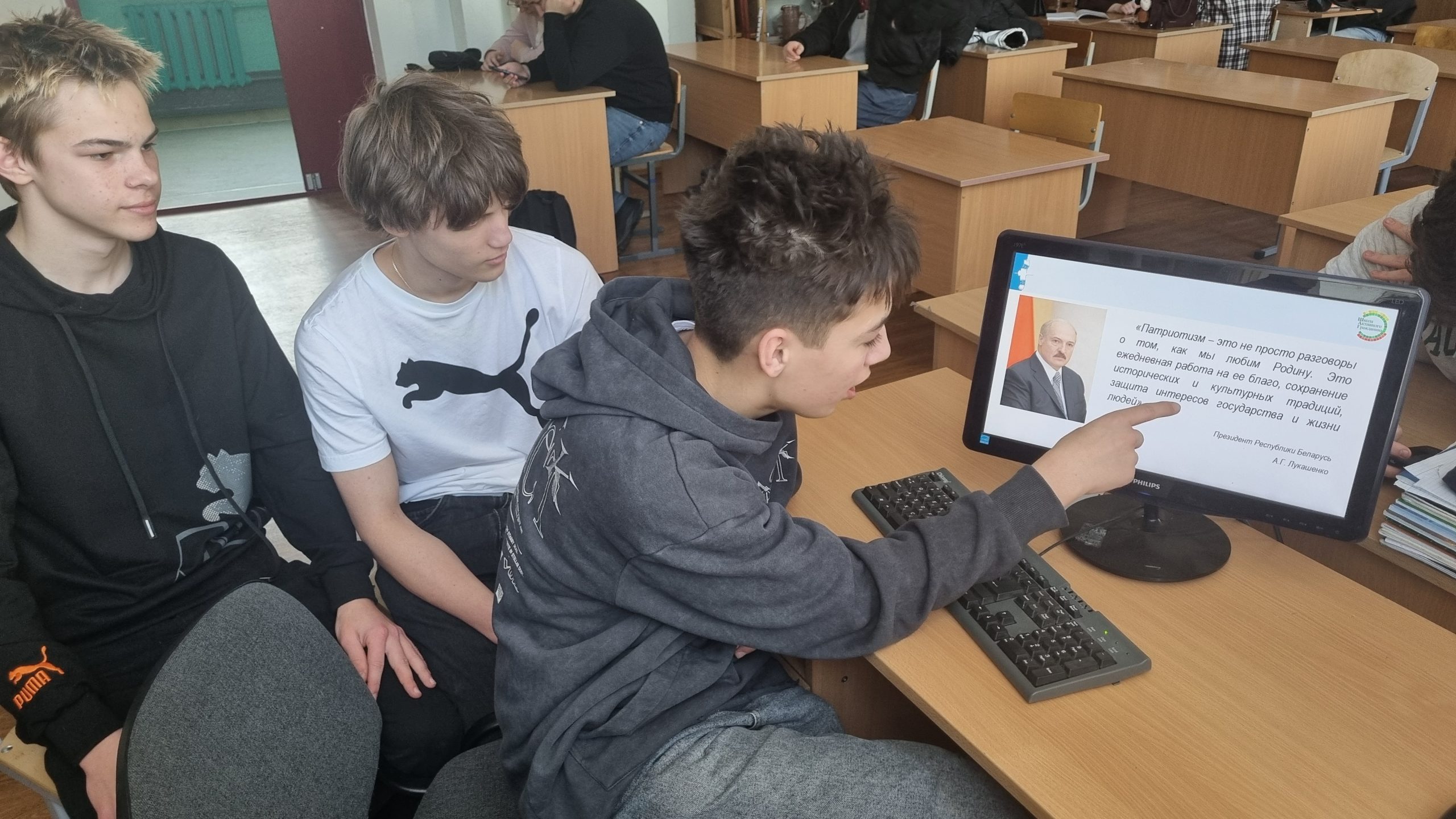 На втором этапе ШАГа «МЫ РАССУЖДАЕМ», в состоявшейся беседе обсудили с учащимися понятия кто такой патриот, что такое патриотизм,что значит быть истинным патриотом, примеры проявления патриотизма, в подвиге Никиты Борисовича Куконенко и Андрея Владимировича Ничипорчика и спортивных достижениях четырехкратной олимпийской чемпионки Дарьи Владимировны Домрачевой, участие учащихся в деятельности военно-патриотических клубов, созданных на базе воинских частей и формирований Министерства обороны, Министерства внутренних дел, Государственного пограничного комитета, Министерства по чрезвычайным ситуациям. В проведенной дискуссии обсудили почему созидательный труд белорусов является проявлением патриотизма, основой достойной жизни и экономической безопасности государства, рассмотрев программу «Один район – один проект» как пример эффективного развития экономики регионов и вклад в процветание своей страны молодого поколения белорусов.