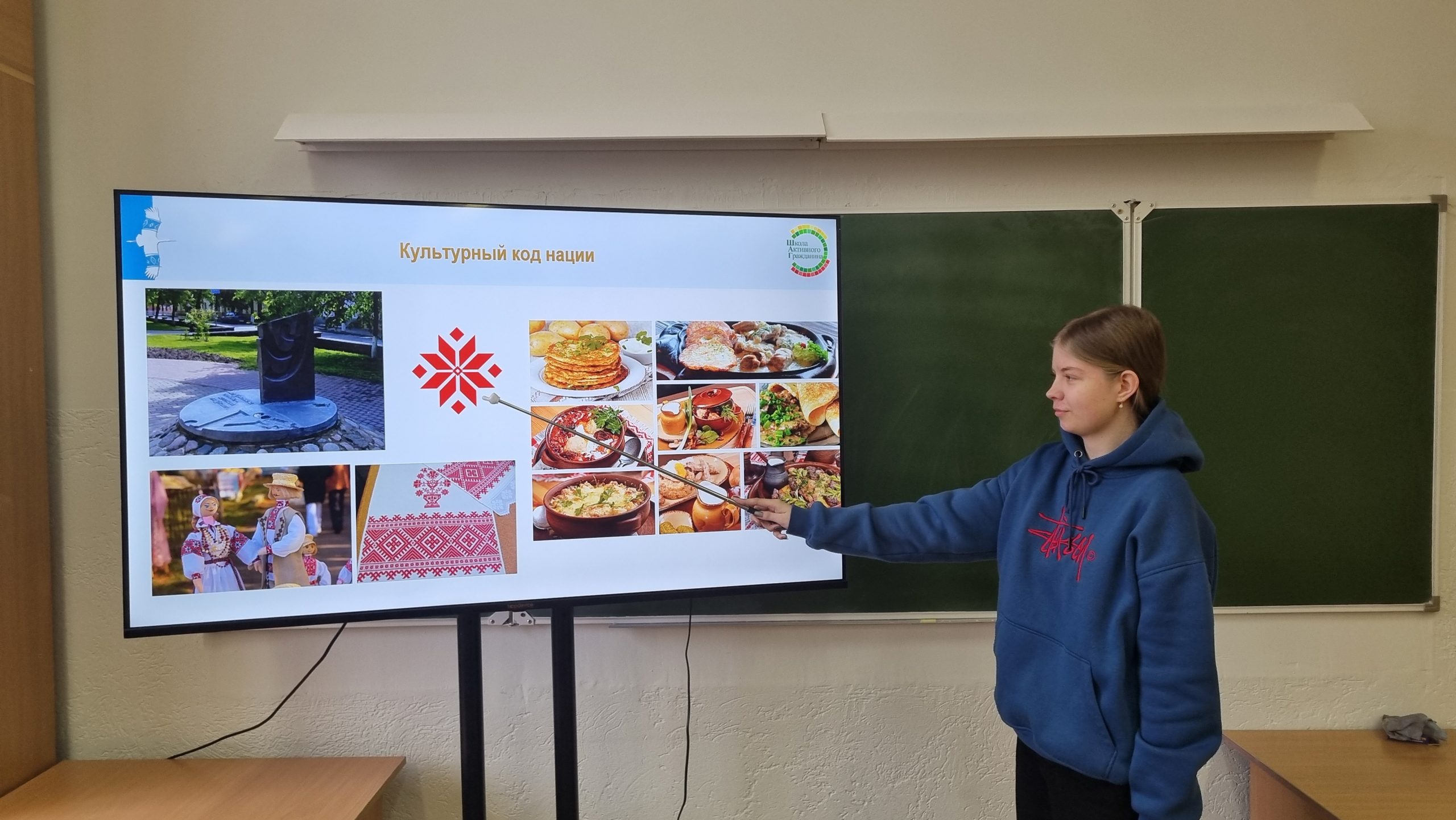 На втором этапе ШАГа «МЫ РАССУЖДАЕМ», в состоявшейся беседе обсудили с учащимися совокупность материальных и духовных благ, созданных и сохраненных обществом, историко-культурное наследие белорусского народа, культурные достижения Беларуси, объекты историко-культурного наследия, которые имеют всемирное значение и включённые в список Всемирного культурного наследия ЮНЕСКО, белорусский язык, орнамент, традиционными виды народных ремесел, щедрость и гостеприимство, белорусскую кухню, традиции, обычаи – как культурный код нации, важность сохранения семейных ценностей белорусского народа, праздники, подчеркивающие важную роль семьи, родительства, детства, ответственность каждого белоруса за сохранение природного наследия для будущих поколений.