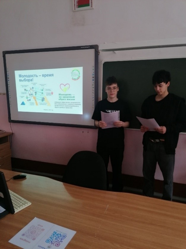 При проведении единого дня информирования в рамках информационно-образовательного проекта «Школа активного гражданина» учащиеся 1-2 курсов на первом этапе приняли участие в интерактивной викторине «Мы узнаём» и обсудили вопросы о здоровом образе жизни, возможностях для оздоровления и занятий спортом в Республике Беларусь, пагубном влиянии на организм наркопотребления и других вредных привычек, необходимости поддержания здорового психологического и эмоционального состояния, изучили рекомендации как не стать жертвой преступных схем наркопреступлений.