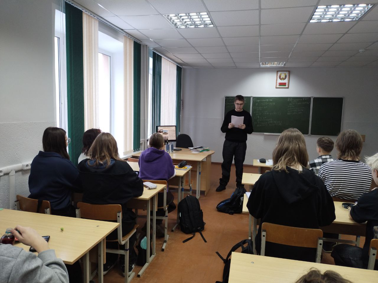 На втором этапе ШАГа «МЫ РАССУЖДАЕМ», в состоявшейся беседе обсудили с учащимися изменения и дополнения, внесенные в Конституцию по результатам республиканского референдума 2022 года, права и обязанности Президента Республики Беларусь, полномочия Всебелорусского народного собрания, говорили о распределении государственной власти в Республике Беларусь, награждении государственными наградами и государственными премиями Республики Беларусь. Акцентировано внимание на правах и обязанностях граждан Республики Беларусь, закреплённых в Конституции Республики Беларусь, на роли Президента Республики Беларусь в обеспечении стабильности в развитии страны. Учащиеся проинформированы о функциях и значении Всебелорусского народного собрания, о взаимодействии основных ветвей государственной власти в Беларуси. В ходе открытого диалога рассмотрены различные аспекты гражданской ответственности: от соблюдения законов и уважения к государственным символам до активного участия в общественной жизни и бережного отношения к историческому и культурному наследию. Подчеркивалось, что будущее Беларуси зависит от каждого из нас, от нашего труда, инициативности и стремления к знаниям. Особое место в мероприятии заняла тема личного вклада в развитие страны.
