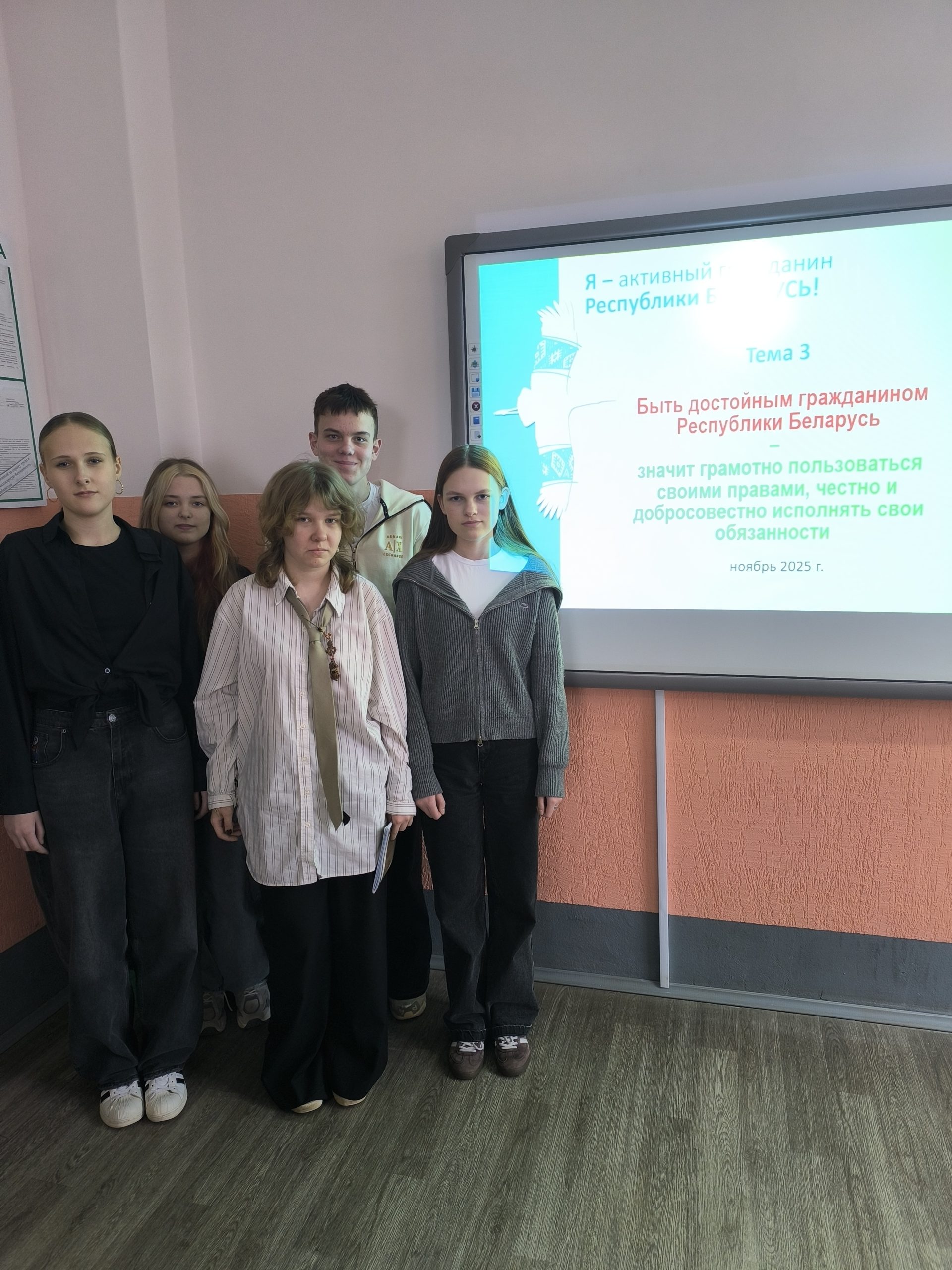 23.10.2025 у учащихся нового набора прошло занятие в рамках информационно-образовательного проекта «ШАГ» – «Школа Активного Гражданина». В фокусе обсуждения Конституция Беларуси, Президент страны, Всебелорусское народное собрание, ветви государственной власти, государственные награды и премии.